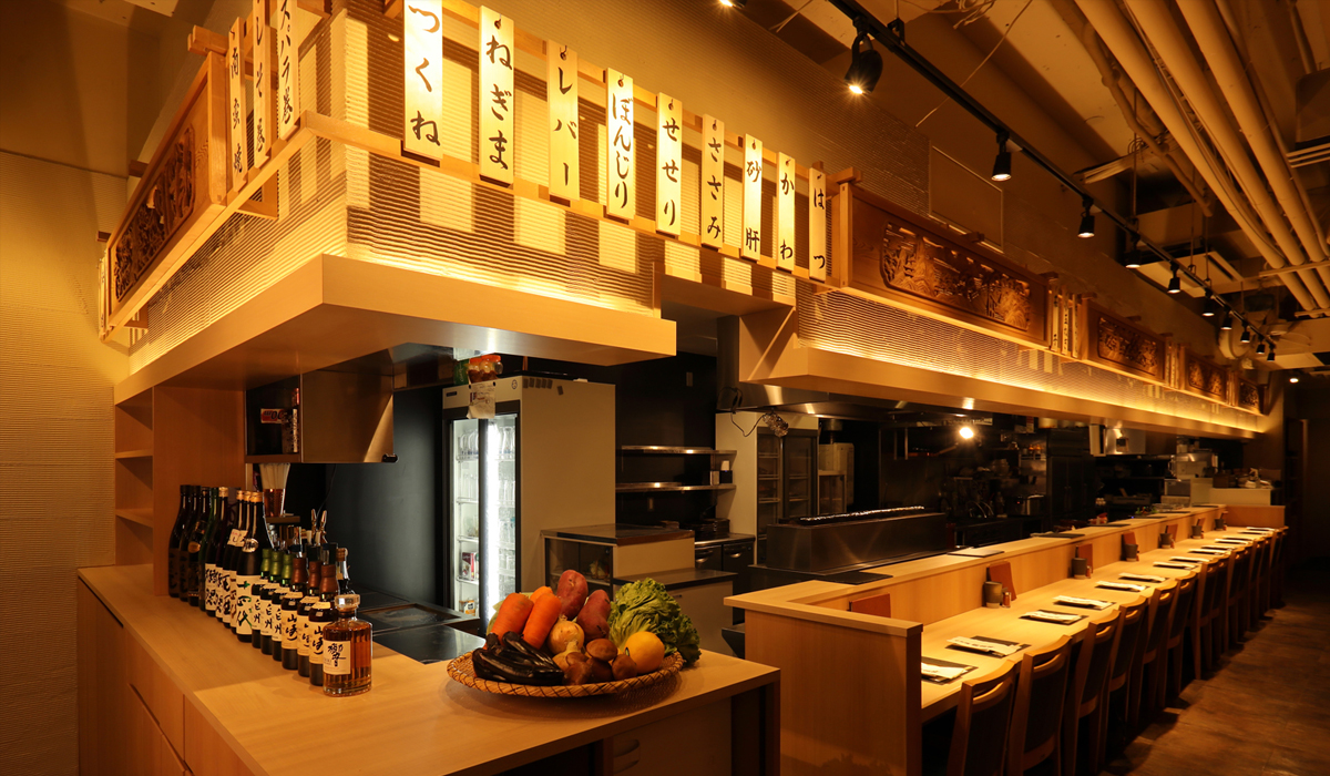 炭の香りに包まれたカウンター席で、焼きたての串が香ばしく立ちのぼる。職人の手仕事を間近に感じながら、一串一酒、ゆったりと味わう至福の時間をお楽しみください。