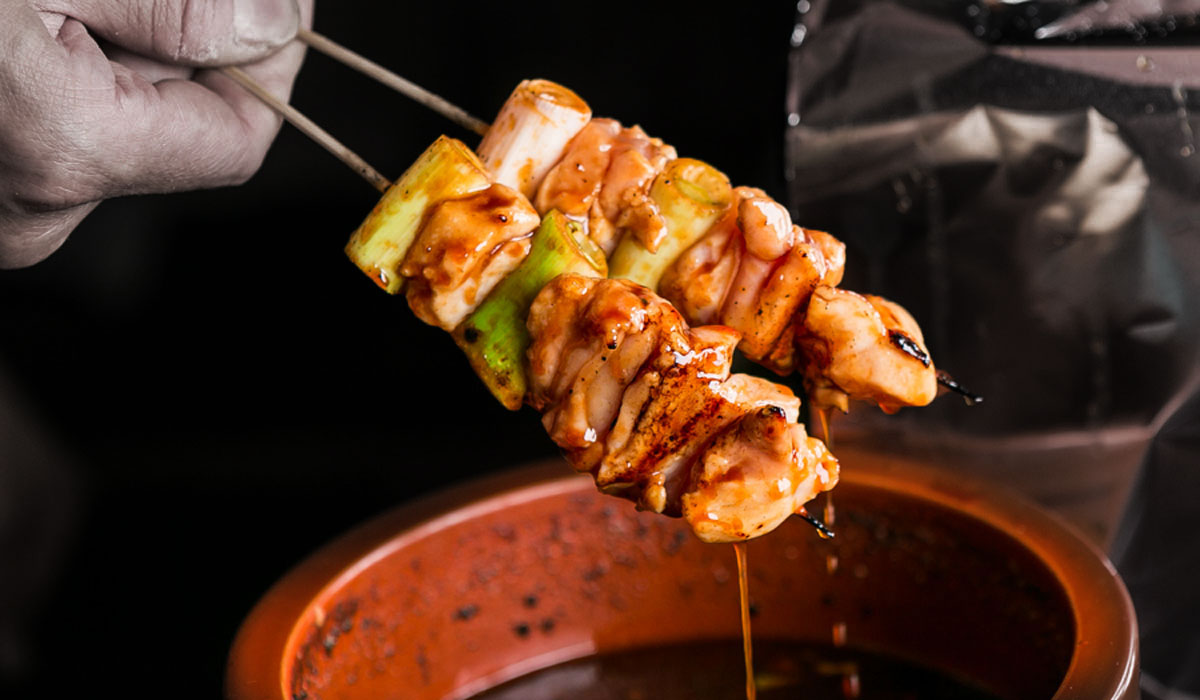 みりんと醤油のみで作るシンプルな味わいの秘伝ダレ。串を何度もくぐらせることで熟成し、旨みとコクが増していきます。火入れ→タレ付けを3度繰り返しコーティング。タレのつけすぎにありがちなしょっぱい串に決してならぬよう職人の確かな目でタイミングをはかり調理しています。